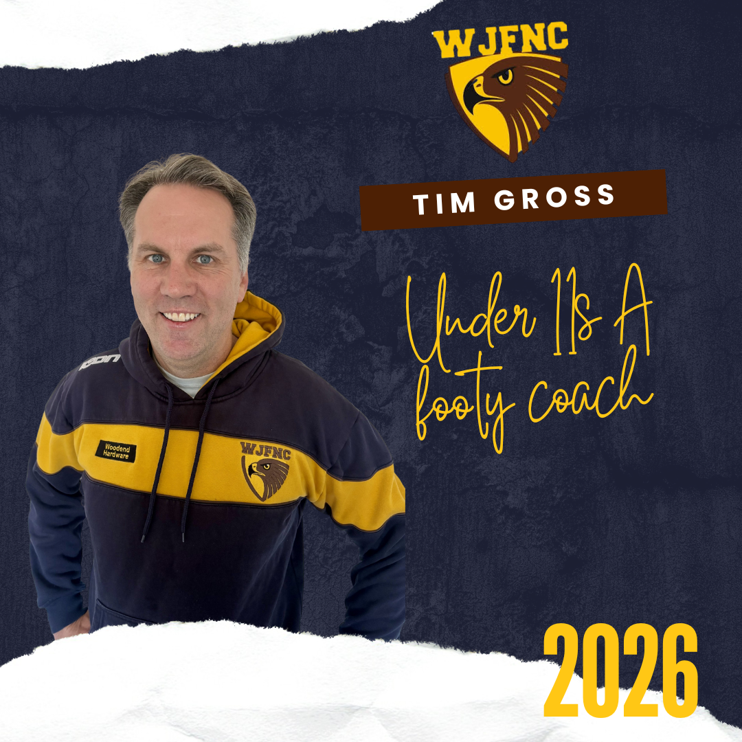 Tim has a lot of football knowledge and is passionate about the WJFNC. We are thrilled to have Tim guiding our U11B team in season 2026. Go Hawks!