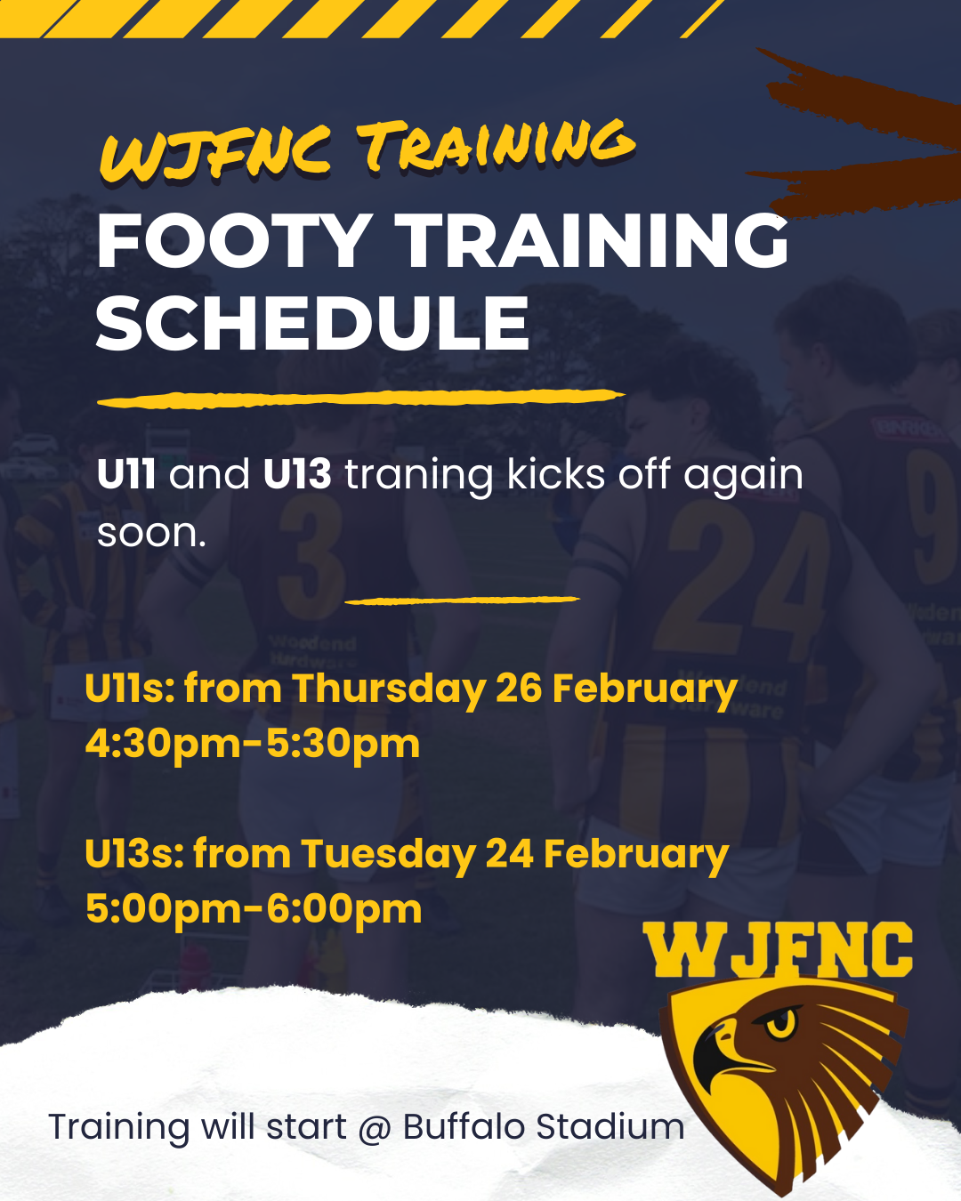 Thinking about playing footy for the Hawks in 2026? Join us for a casual kick at Buffalo and get a feel for the game and the team!