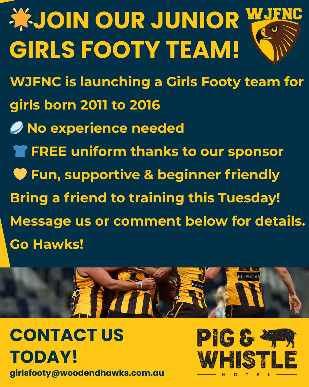 WJFNC is built on respect, teamwork and inclusion. We work closely with families, schools and the broader Woodend community to create positive sporting experiences for all participants.