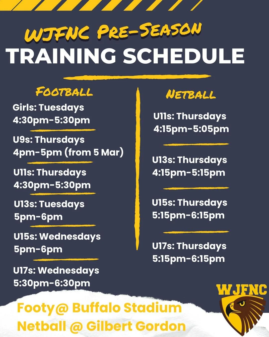 The Woodend Junior Football Netball Club (WJFNC) is a community-based club focused on giving children and young people a safe, supportive and fun environment to play football and netball.